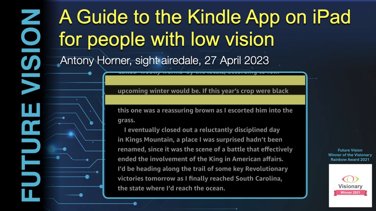 Future Vision Sessions concentrate on Technology for people with sight loss and take place on the 4th Thursday of each month at 10am.
